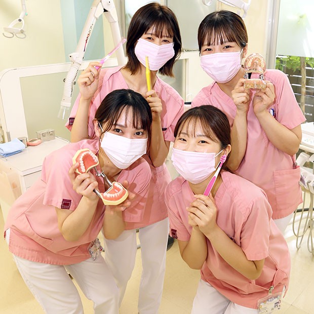 歯科衛生士免許を取得して初の職場が当院というスタッフがいますが、院長や先輩スタッフの指導のもと実務経験を積んでめきめき力を付け、今では最前線で活躍してくれています。